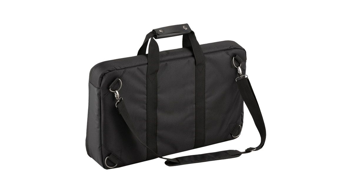 Jest to dedykowany miękki futerał, idealny do transportu minilogue. Kultowy, skośny wzór komfortowo dopasowuje się do sylwetki minilogue z dużą warstwą amortyzacji. Zewnętrzna strona SC-MINILOGUE jest wykonana z wytrzymałej plandeki i posiada poręczną kieszeń na kable. Zawiera również pasek do noszenia ręcznie, na ramieniu lub jako plecak.