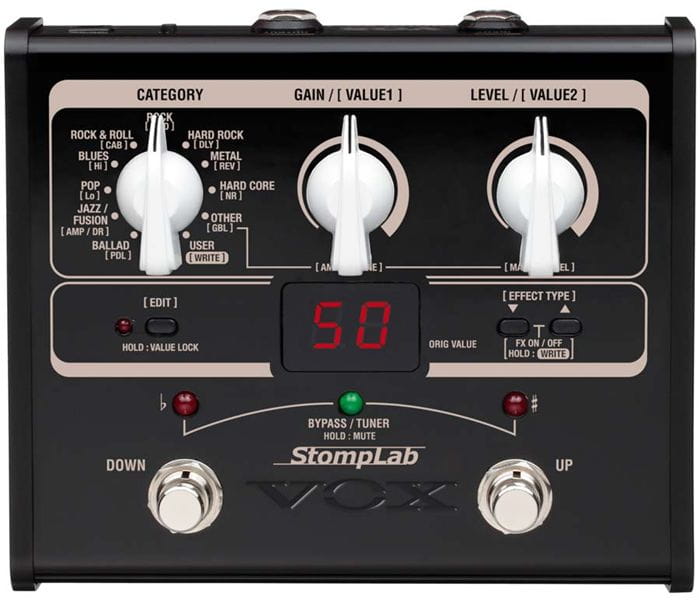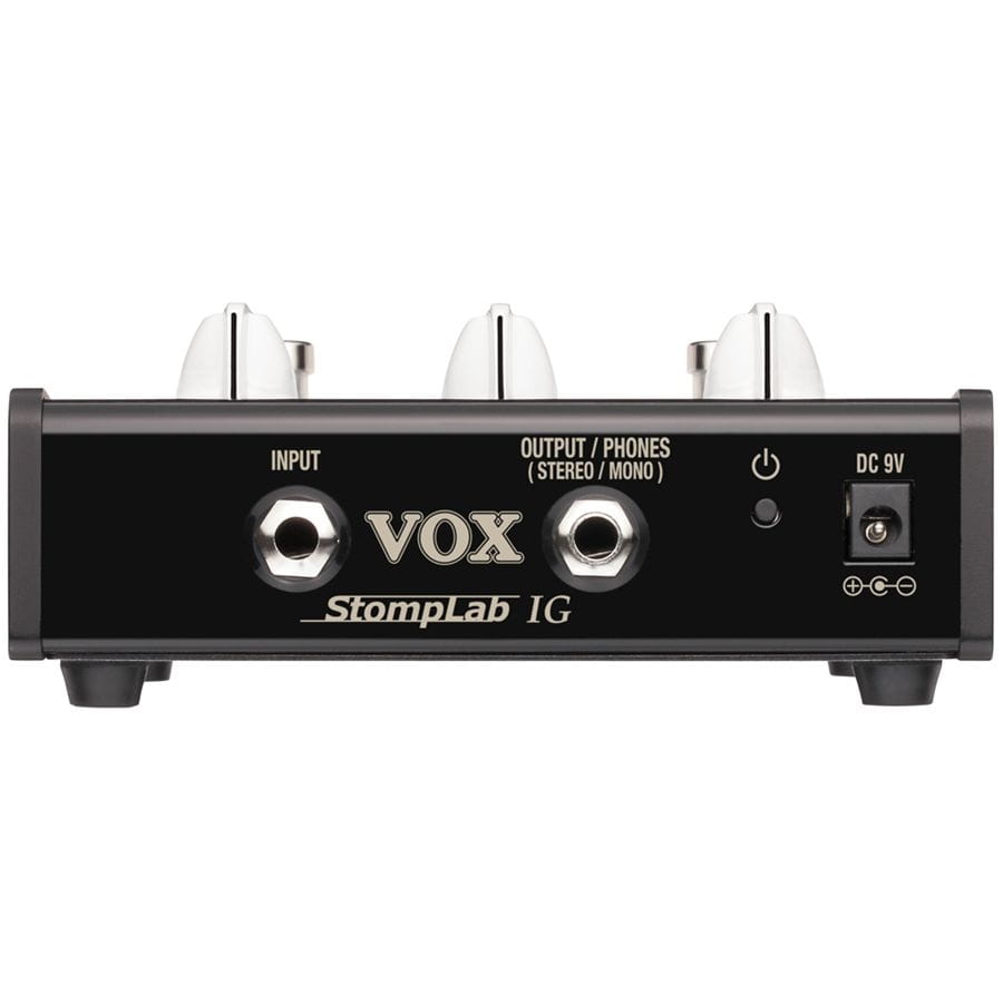 Vox StompLab IG to kompaktowych rozmiarów, gitarowy multi-efekt w solidnej i eleganckiej metalowej obudowie, oferujący łącznie 103 gotowych programów podzielonych według klucza stylistycznego (rock, blues, metal, pop), cechujący się łatwością dostępu do funkcji i barw (nawet początkujący użytkownicy z pewnością nie będą mieli problemów z obsługą tego urządzenia. 103 efekty zawarte w StompLab'ie oparte są na silnikach bestsellerowej serii wzmacniaczy VT+, jak również serii multi-efektów ToneLab. W 20 własnych programach, które użytkownik może zapisać w pamięci urządzenia jest możliwe korzystanie z 8 efektów jednocześnie.Urządzenie na pokładzie posiada równiez chromatyczny tuner z funkcjami "bypass" i "mute".